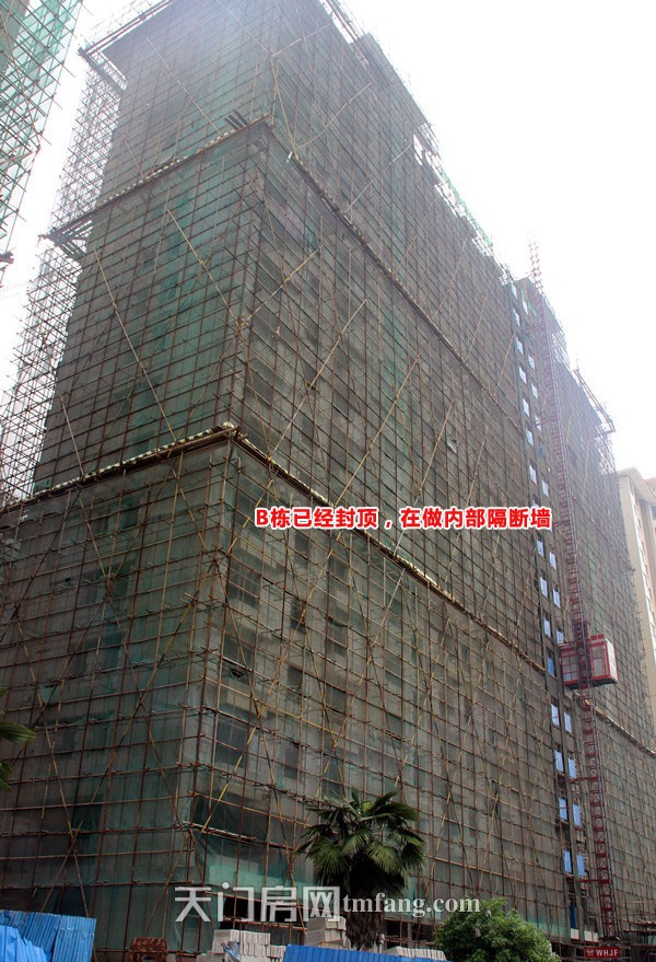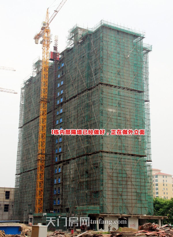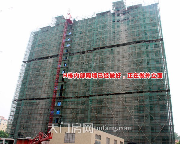工程进度:A、F、G全部是现房,顶面已经平整,天然气管道也都已经装好,预计五月底交房;E栋外立面已经做好;D、I、H栋正在做外立面;B栋已经封顶,在做内部隔断墙;C栋已经做到11层;