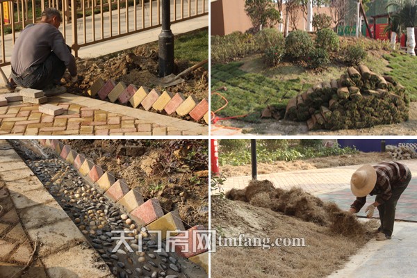 小区内工人正在加紧时间绿化