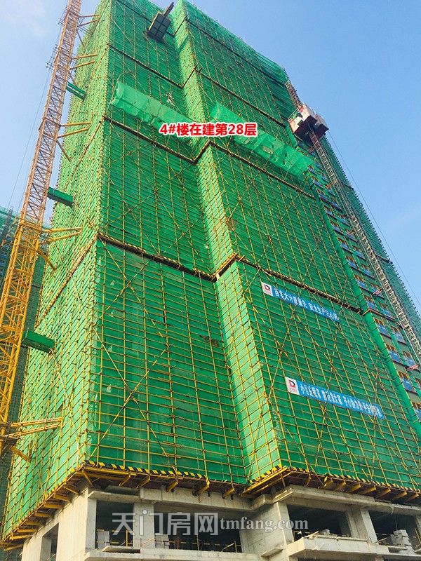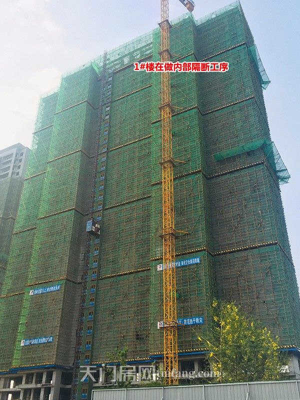 6月工程进度:南德荟景湾1#楼在做内部隔断工序,2#楼即将封顶,3#楼在打桩,4#楼在建第28层,5#楼建至第1层。