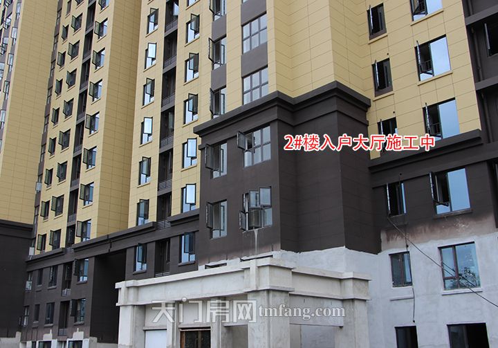 ▲2号楼外立面铺装完毕,入户大厅,电梯安装中