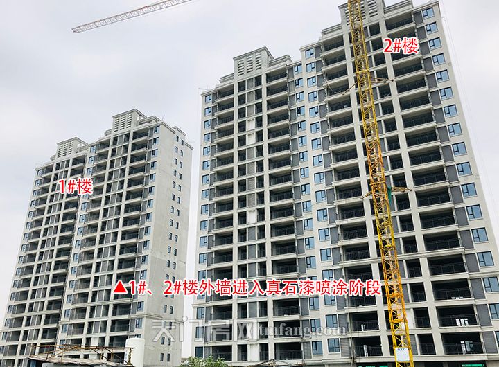 ▲1号楼和2号楼外墙进入真石漆喷涂阶段