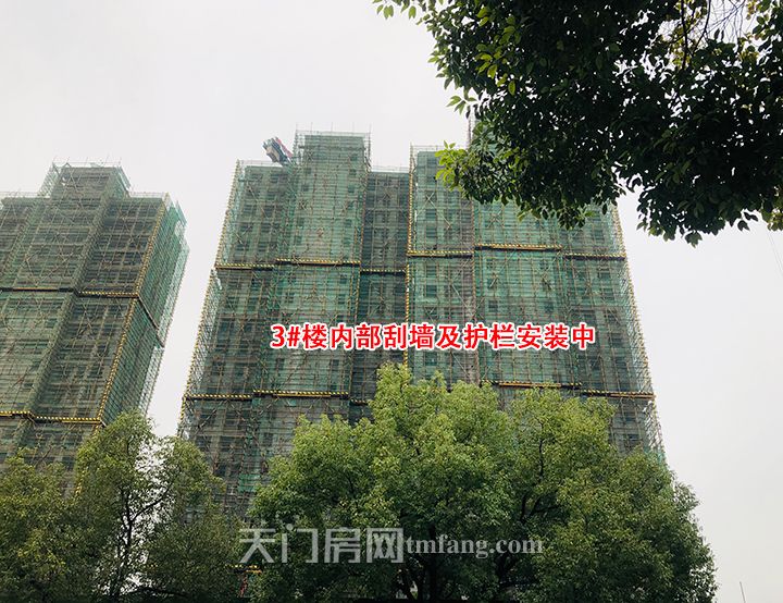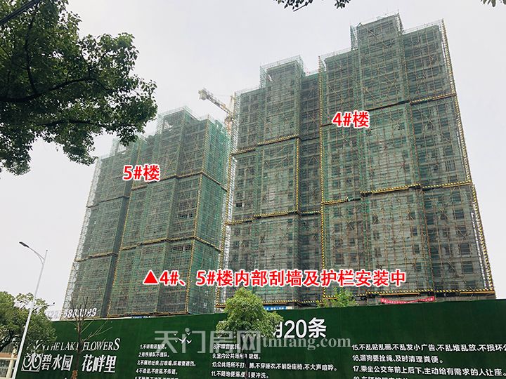 11月工程进度:碧水园·花畔里1#、2#楼外墙真石漆喷涂中,3#、4#、5#楼内部刮墙及护栏安装中。