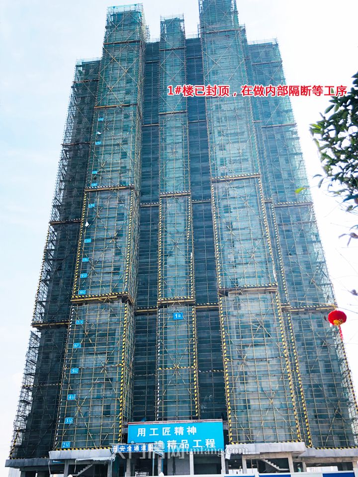 ▲1#楼已封顶,正在做内部隔断等工序
