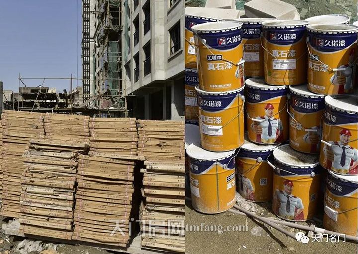 ▲三号楼下的即将安装的外立面砖和真石漆