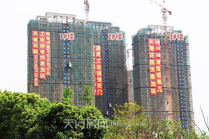 4月工程进度:天禧花园1#楼、2#楼、3#楼开始拆除脚手架和防护网,准备接下来进一步的施工工序;11#楼在建28层;12#楼在建28层,工地上正在火热施工中!