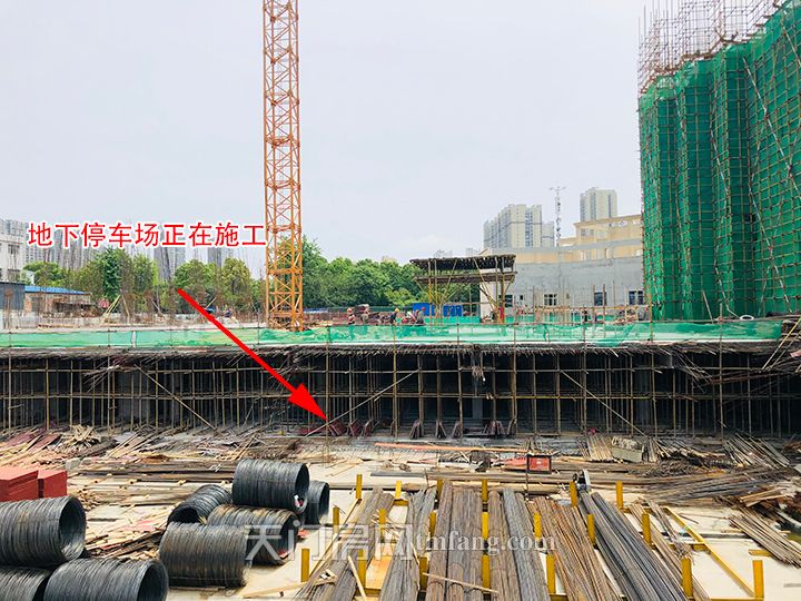4月工程进度:碧水园·锦城1号楼建至第7层,地下停车场施工中!