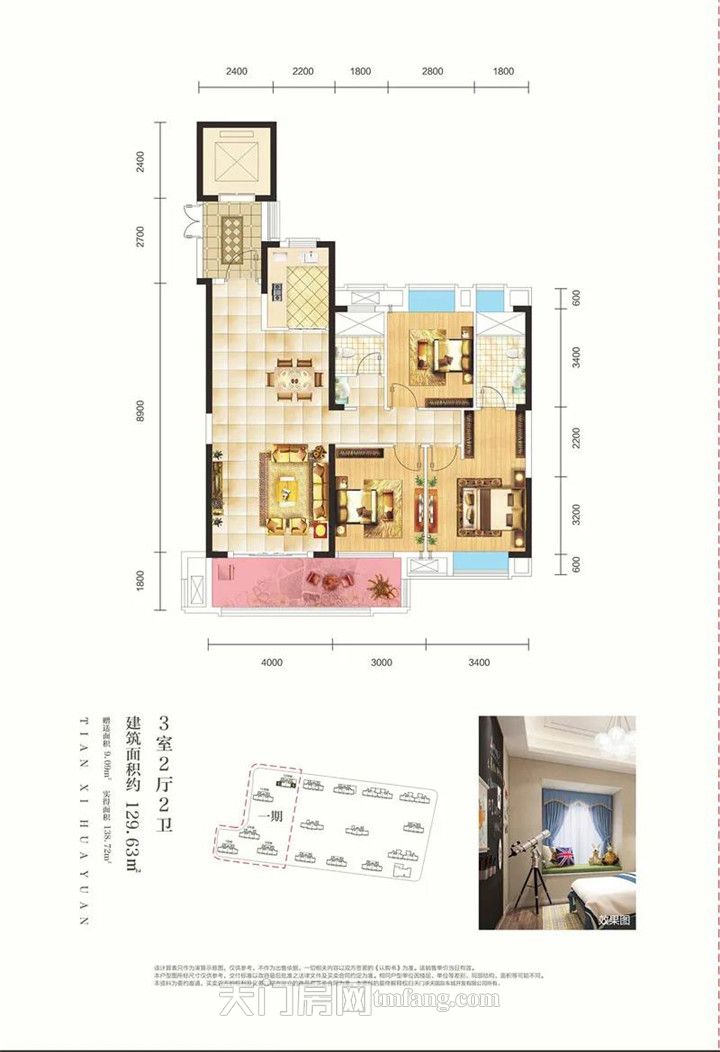 天禧花园位于承天国际车城南、华西农贸市场东(正门对面),地块为长方形,总建筑面积为32万平米,由16栋高层组合而成。一期建面约115-128平米的居家产品,采取半围合式布局,保证每户的视野度,户型全部为南北通透型,社区楼间距宽阔,拥有良好的采光和视野,充分满足了业主对美好生活的向往。