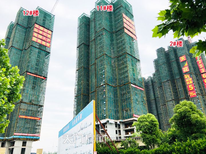 5月工程进度:天禧花园1#楼正在安装下水管道、做防水保温等工序;2#楼在做内部管道安装等工序;3#楼在做内部管道安装等工序;11#楼在建31层;12#楼在建31层,工地上正在施工中!