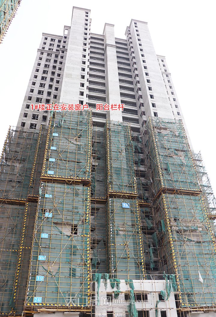 ▲1号楼正在安装窗户、阳台栏杆