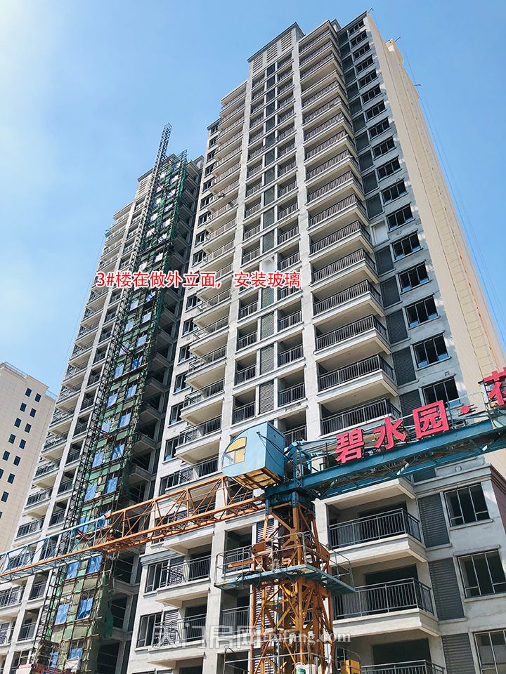 6月工程进度:碧水园·花畔里1#、2#楼正在完善内部安装,3#楼在做外立面,安装玻璃,4#楼正在安装护栏和窗户、开始拆脚手架安装阳台栏杆,5#楼在拆防护网、安装阳台栏杆。