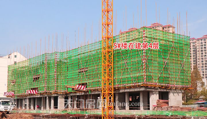 10月工程进度:碧水园·锦城1#楼和2#楼已喜封金顶;3#楼在建第9层;5#楼在建第4层,工地上正在施工中!