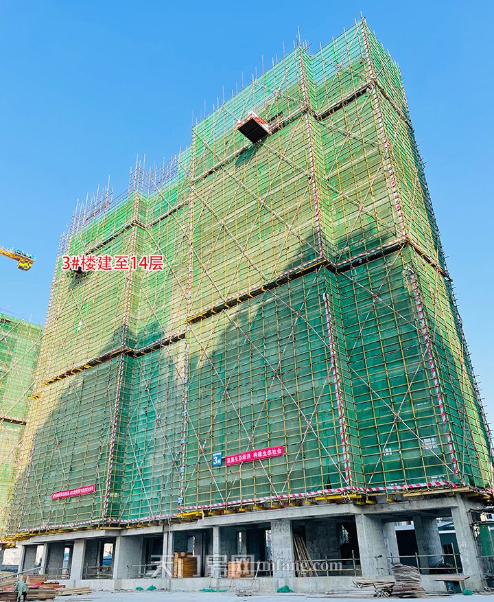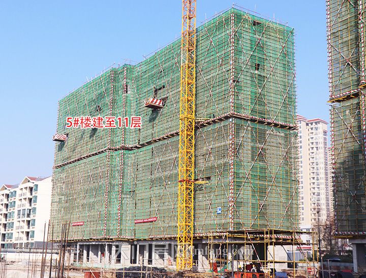 12月工程进度:碧水园·锦城1号楼已封顶,外部正在拆除脚手架;2号楼已封顶;3号楼建至14层;4号楼钢筋绑扎施工中;5号楼建至11层。