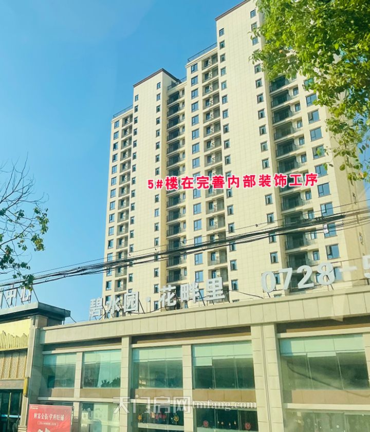 8月工程进度:碧水园·花畔里1号楼、2号楼、3号楼已交房,已经有业主入住;4号楼在完善内部装饰工序,单元内部基本做好,入口吊顶已做好;5号楼在完善内部装饰工序。