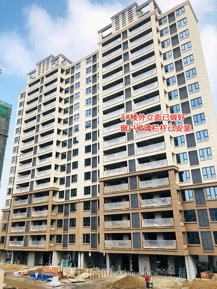 3号楼外立面已做好,窗户玻璃栏杆已安装