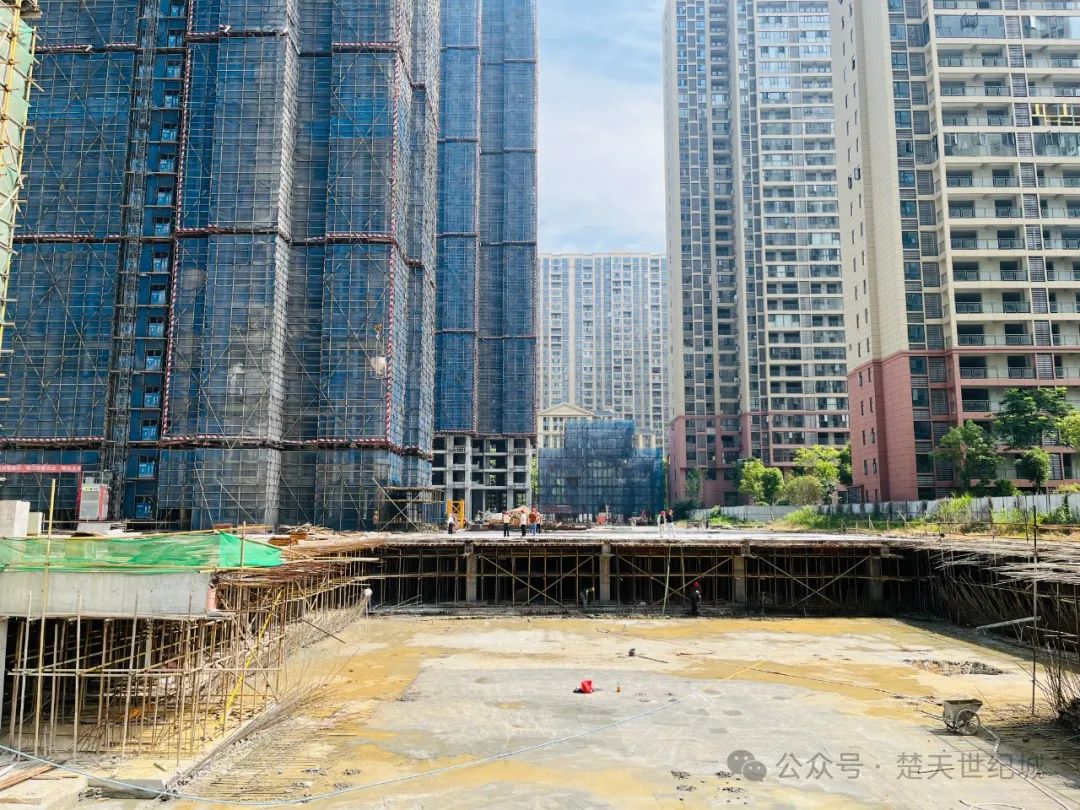 楚天世纪城西区13#14#16#17#20#21#六栋楼全部封顶,正在进行墙体砌筑、顶楼花架、电梯机房、地下室等施工 ☝