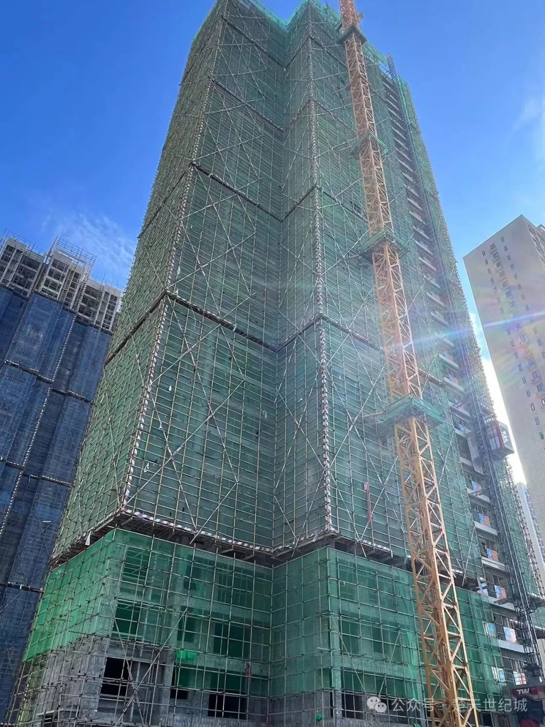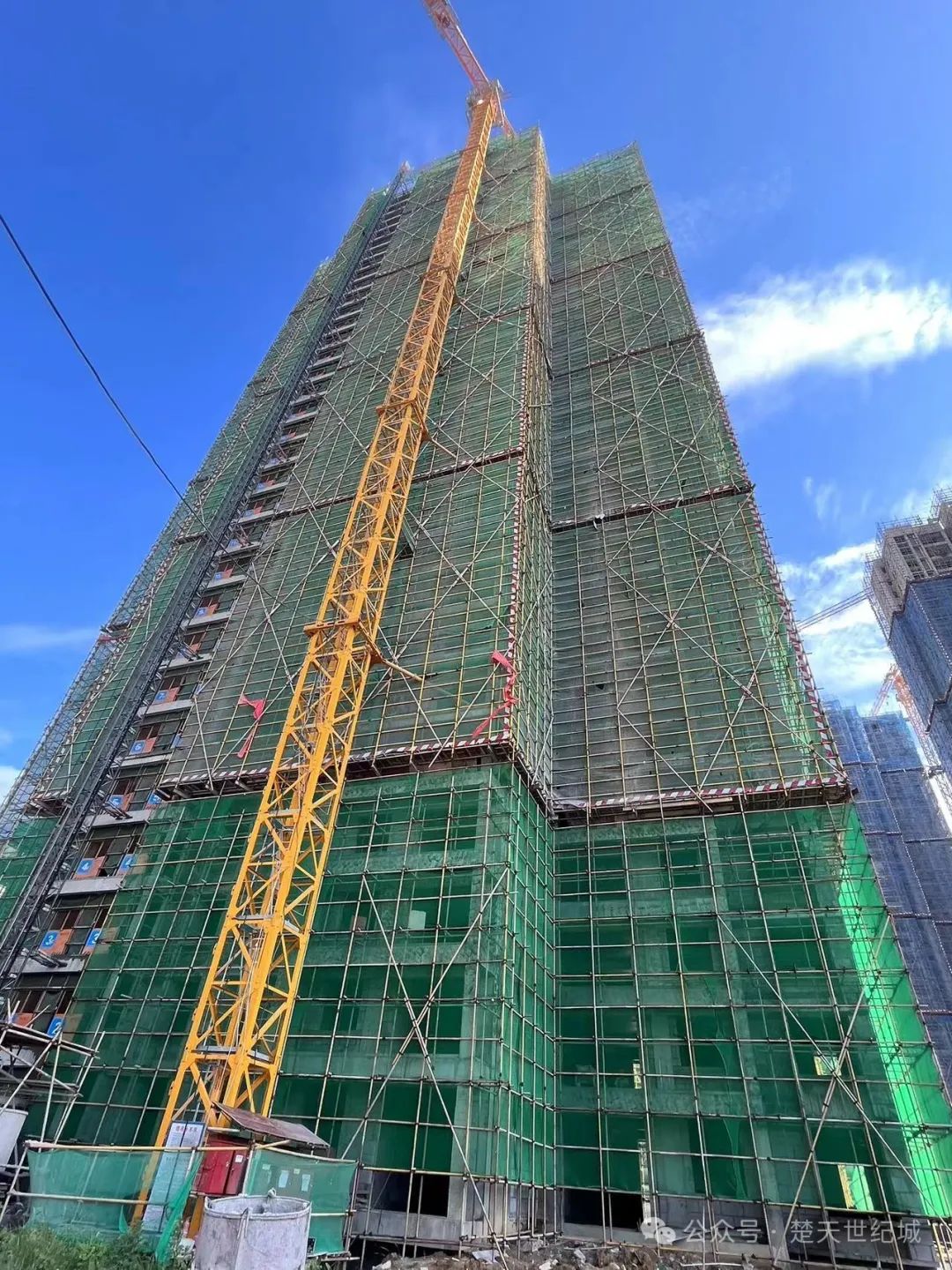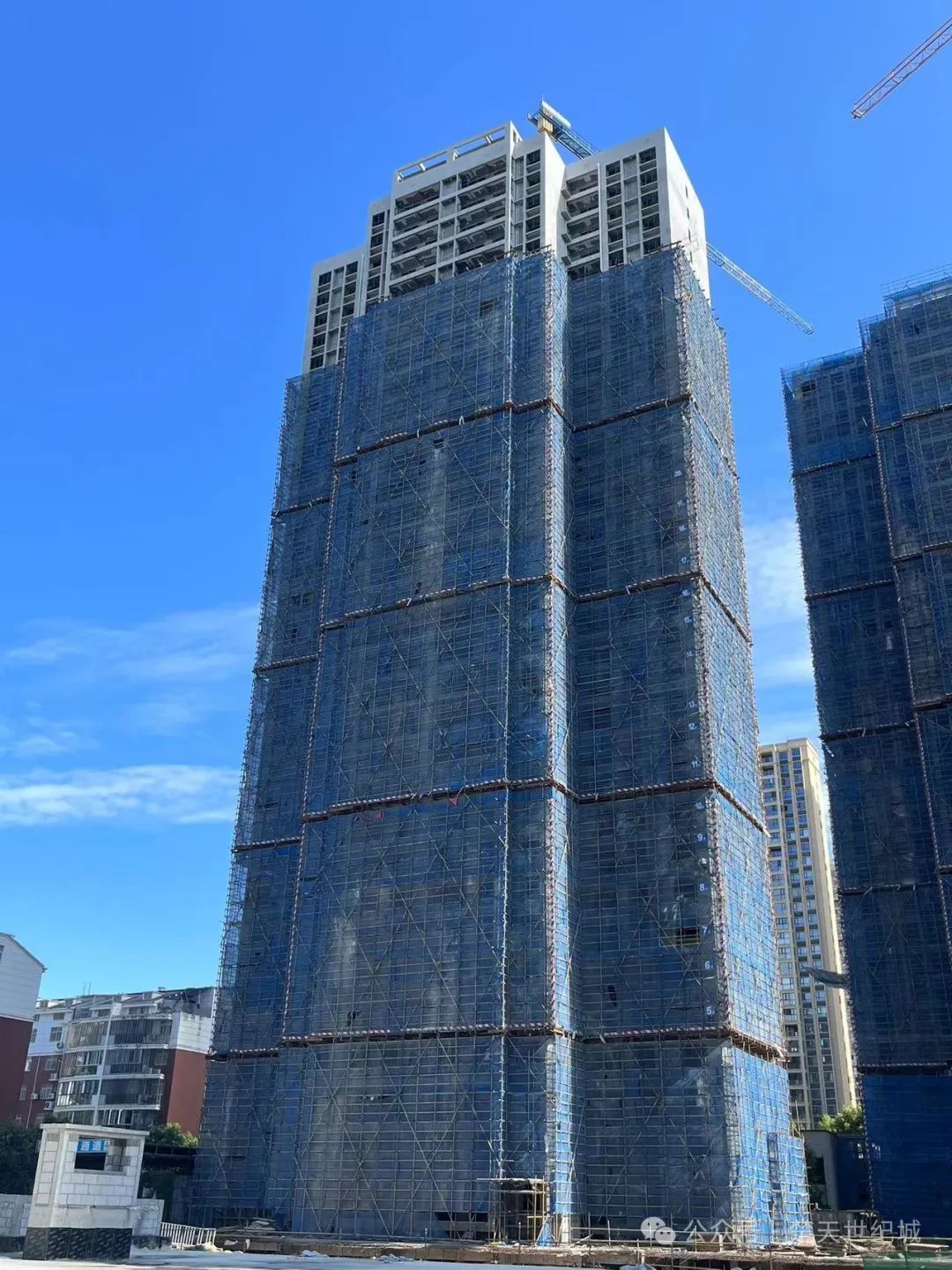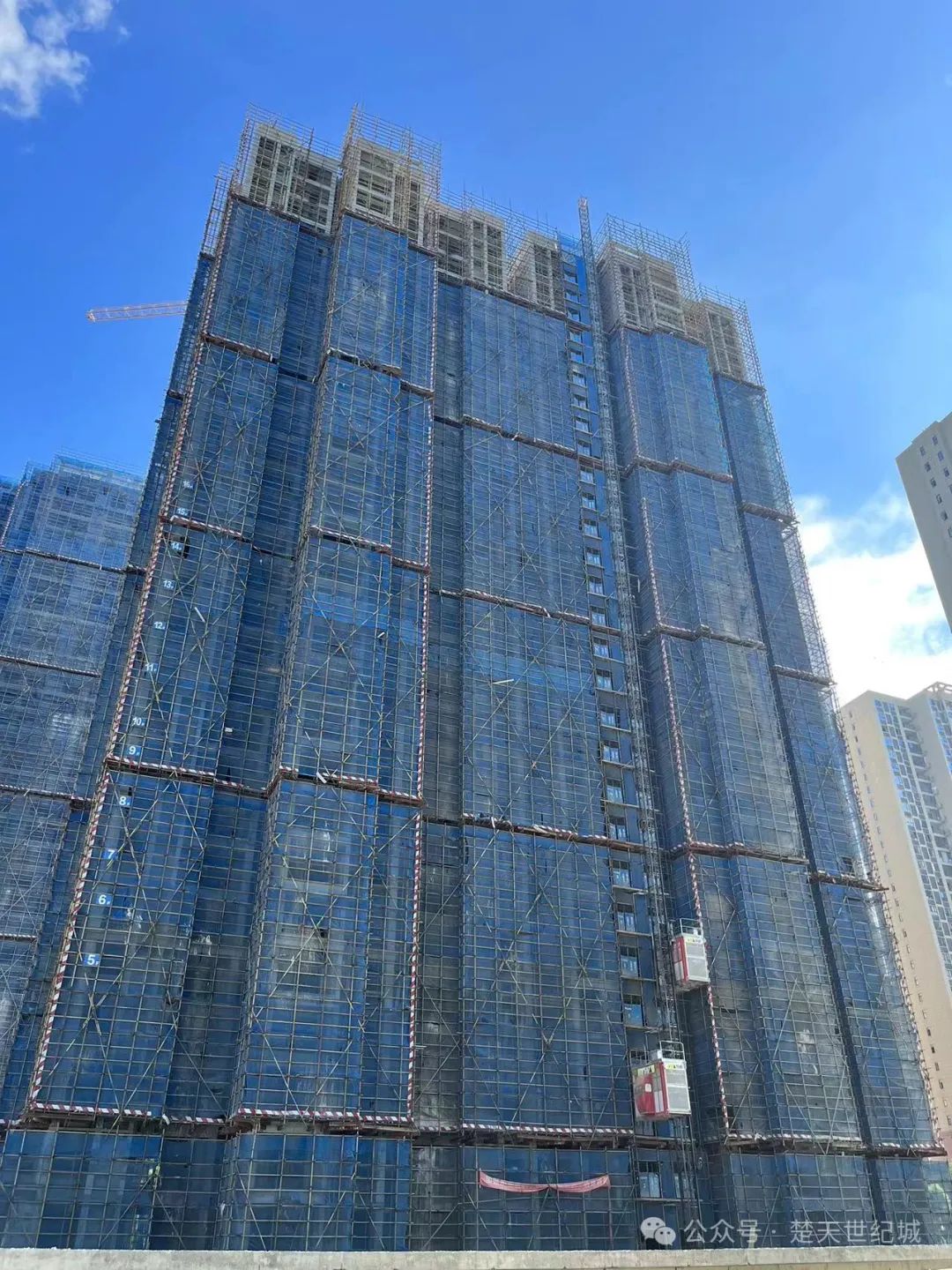 20#楼 内粉5--17层已完成,18--26层正在粉刷;外粉33--5层已完成,4--2层正在施工。