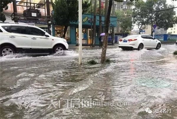 暴雨时的天门城区