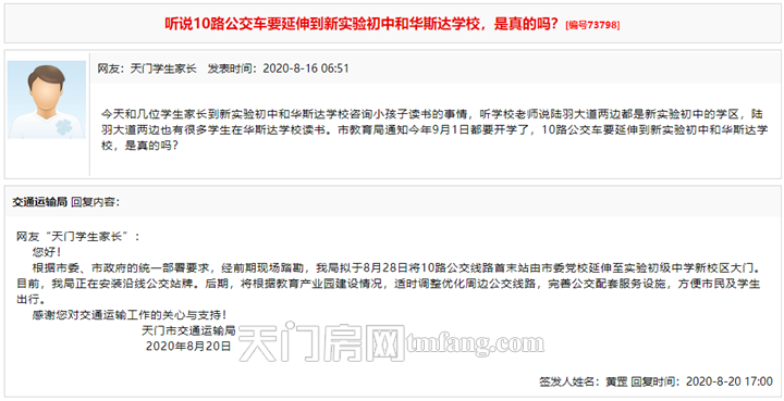 买房看地段、看区位、看交通,其中是否有公交路线是判断楼盘地段好坏的条件之一。近日从交通运输局获悉,拟于8月28日将10路公交线路首末站由市委党校延伸至实验初级中学新校区大门。目前,正在安装沿线公交站牌。后期,将根据教育产业园建设情况,适时调整优化周边公交线路,完善公交配套服务设施,方便市民及学生出行。