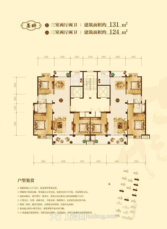▲华泰雅苑131㎡D户型/124㎡D1户型