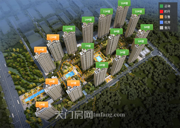 天禧花园位于承天国际车城南、华西农贸市场东(正门对面),地块为长方形,总建筑面积为32万平米,由16栋高层组合而成。一期建面约115-128平米的居家产品,采取半围合式布局,保证每户的视野度,户型全部为南北通透型,社区楼间距宽阔,拥有良好的采光和视野,充分满足了业主对美好生活的向往。