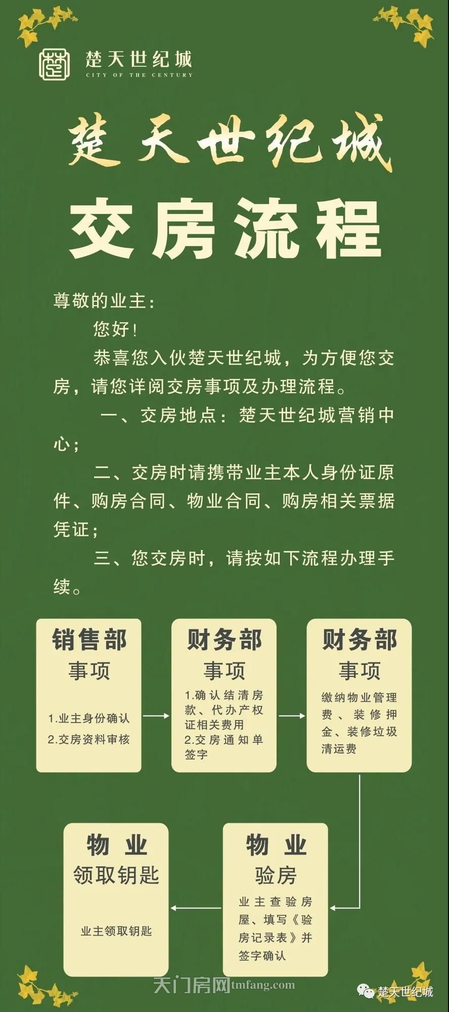 二、交房地点:天门市陆羽大道东8号楚天世纪城营销中心;