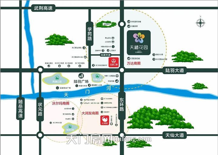 天禧花园位于城东发展核心圈,与华西农贸市场隔街相望,延东环线往南300米就是万达广场。各大银行、餐厅、电影院、健身房、超市等繁华配套,休闲中心近在咫尺。尊享重磅级配套资源,成就天门价值高地!