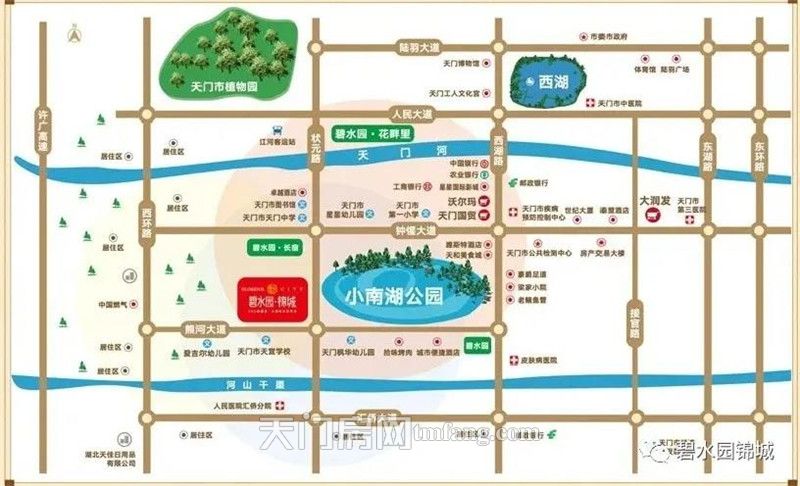 碧水园·锦城以打造理想人居为使命,临近小南湖河畔,一线河景观尽入眼帘,毗邻CBD繁华商业带,难得水光山色与城市风光皆兼得,入则宁静致远,出则斑斓万象。项目位于天门市状元路与熊河大道交汇处,东临状元路,北临钟惺大道,南边是河山支渠。车行5分钟即可到达天仙公路以及随岳高速入口,地理位置优越,生活满分便利,坐享商业、教育、医院、公园等醇熟配套,咫尺间尽享璀璨繁华。