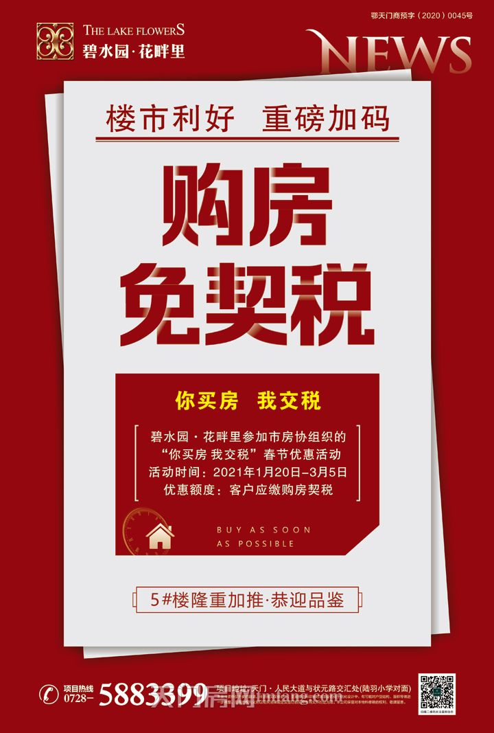 碧水园·花畔里,依河而立,享天门河绵延河岸线,容积率低至2.7,超高的绿化率为天门人居构造出一处隔离闹市的原生态生活环境,给予居者更高的舒适度,带来更充足的阳光与清风,重现生活本真。