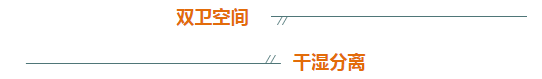 双卫设计,充分利用空间。干湿分离两段式设计,人性化的将淋浴区进行隔断处理,解决卫生间使用冲突的同时规避水花四溅,保持地面干燥室内干爽。