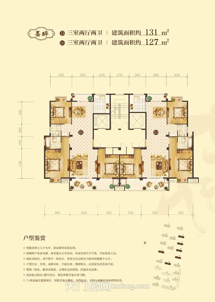 华泰·雅苑精研不同阶段人群,从生活出发,用细节考量。小区纯板式结构,南北通透,一梯一户设计,是天门目前唯一一家新风入户,智能刷卡电梯的社区。从用材用料,多处细节都是以人的感受为置居根本。雅苑业主每户标配电子指纹密码锁,精装入户大厅。窗台到阳台都采用55系列美亚达断桥铝材质,窗户及阳台玻璃都采用LOW-E6+12+6隔音隔热中空玻璃,严选每一处细节工艺。每家的入户门都是全国十大门业品牌——新多防盗门,电梯也是全国十大品牌——杭州新马电梯提供等。真正做到了安全无忧,品质保障。让业主感受到高贵品质生活魅力所在。