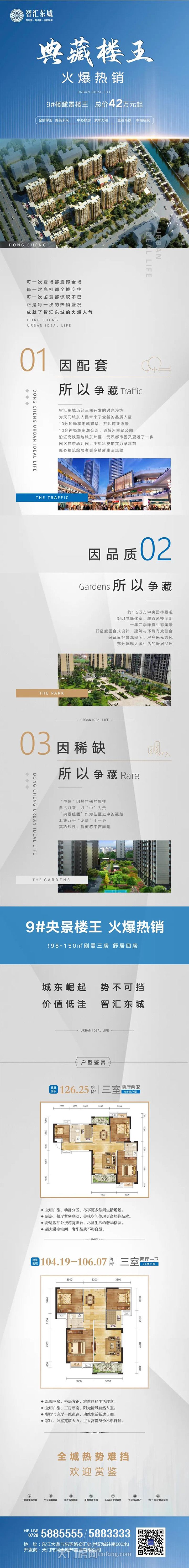 问天· 智汇东城,倾心雕筑1.5万方中央园林景观,开发商自建品质物业,塑造城东片区标杆人居,将为天门置业者带来更加优越的生活体验。9#央景楼王火爆热销中,项目总价42万起即可住万达旁三居室,安家置业不容错过!顺承城市规划,方能坐收发展红利,智汇东城,城东核芯地段,10分通达老城区,与万达广场 一步之遥,沿江高铁站同轴线,配套资源升级来袭,未来已现,值得期待!