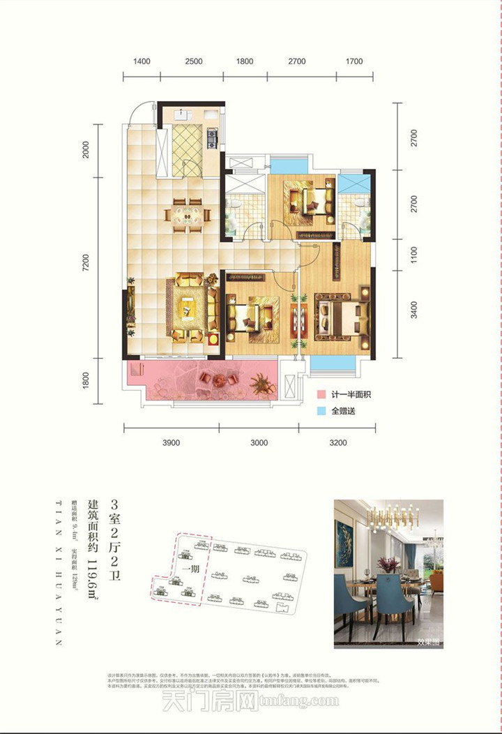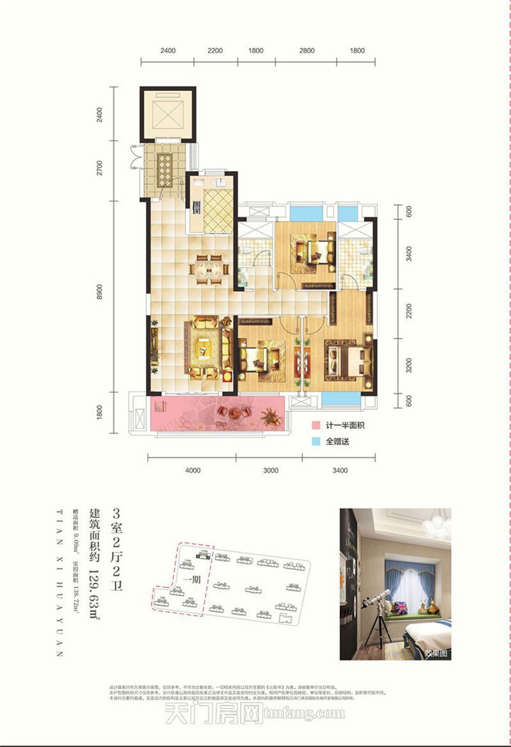 天禧花园位于承天国际车城南、华西农贸市场东(正门对面),地块为长方形,总建筑面积为32万平米,由16栋高层组合而成。一期建面约115-128平米的居家产品,采取半围合式布局,保证每户的视野度,户型全部为南北通透型,社区楼间距宽阔,拥有良好的采光和视野,充分满足了业主对美好生活的向往。