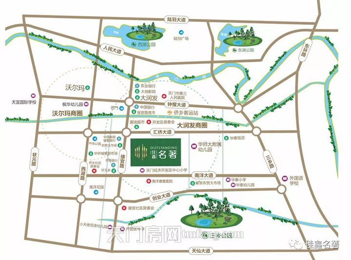 佳鑫·名著地处天门城南,聚集政治、经济、教育、医疗等配套,优质资源集聚,生活配套醇熟。大润发超市、新城CBD商城等环伺左右;建行、工行、农行等金融机构林立,方便生活所需。