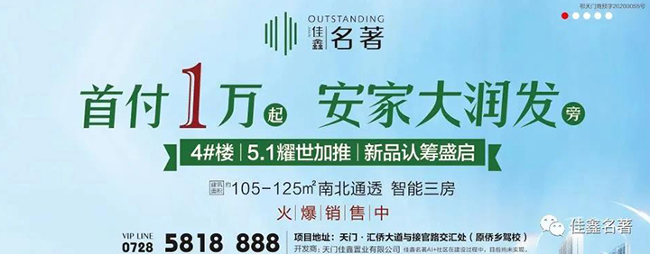 佳鑫·名著项目自面世以来,就受到天门人民的青睐,目前4#楼5.1耀世加推。