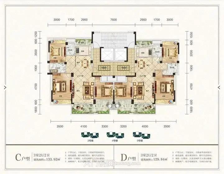 从居家需求出发,科学布局礼遇温馨生活,让空间为功能服务,打造建筑面积约132-137㎡全明户型,以舒朗空间尺度,赋新美好生活的想象。