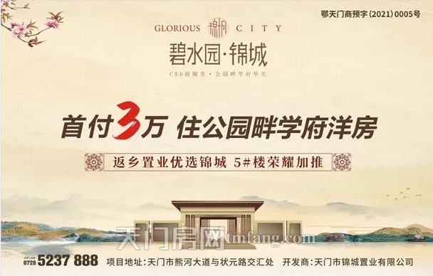 顺发集团进驻天门历时9年,在天门开发了“碧水园”、“碧水 园·长宿”、“碧水园·花畔里”,已有2000余家庭落户“碧水园”系 列社区,碧水园·锦城系顺发集团打造的第4代“碧水园”系列产 品,为天门市民创造一个更舒适而又具有内涵的品质人居社区。
