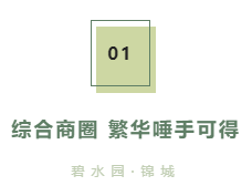 引领街区生活,静享都市繁华。碧水园·锦城可满足全龄段的需求,项目自带社区商业,可满足您的日常购物需求。
