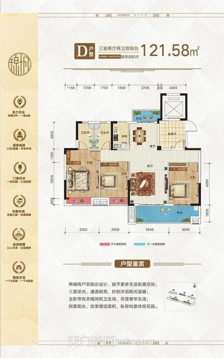 >>建面约121.58㎡户型展示