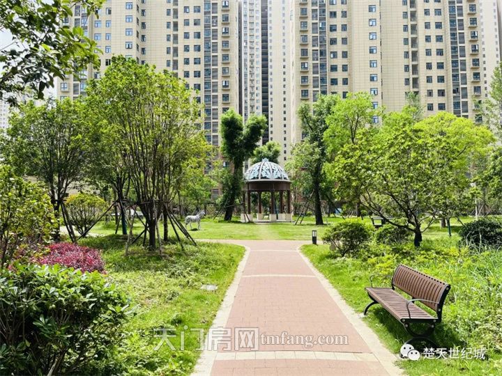 画面在眼前徐徐展开,甬道上罗汉松、银杏、乌柏、香樟等原生树种,绿意弥漫。亭台楼阁,小桥流水,景象各异。满园的四季盛景尽收眼底,春花秋月,夏蝉冬雪,入眼即是葱翠紫蔚,入耳则是清脆鸟鸣。 这样的小区风景,手机随便一拍,都是一幅好画,说在天门独领风骚,你还用怀疑么?