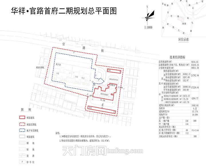 湖北华祥博来置业有限公司申报的华祥·官路首府二期项目,位于义乌路以西,官路街南侧。规划拟新建1栋24层住宅楼,2栋1层车库。项目总建筑面积为43216.35平方米,容积率为4.22 ,日照分析满足规范要求,具体详见规划总平面图、日照分析图和效果图。经天门市自然资源和规划局竟陵分局审查,拟同意批准该项目规划方案,现将拟批准的规划总平面图予以公示。有关单位或个人如对此规划有异议,请在公示期间向竟陵分局提出书面异议书。