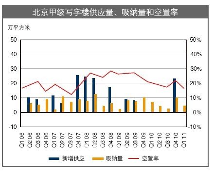 2011年季度五大城市甲级写字楼新增量偏低,而市场需求保持旺盛,市场存量得以持续消化,空置率呈现明显下降态势,预计未来一段时间租金将继续保持稳定上涨趋势,随着市场的持续上扬,未来写字楼投资、开发也将迎来一轮高潮。_ueditor_page_break_tag_副标题