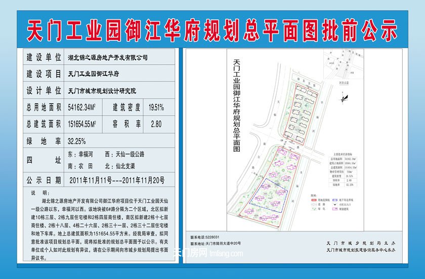 【批前公示】 天门工业园御江华府规划总平面图批前公示