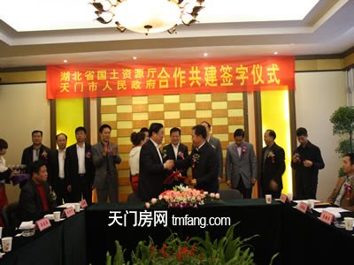 为共同加强国土资源管理,推进天门市“两型”社会建设,促进天门市实施“三大战略”,实现“四大跨越”,11月8日,湖北省国土资源厅与天门市人民政府在天门市签署了《共同加强国土资源管理推进天门市“两型”社会建设综合配套改革工作备忘录》。