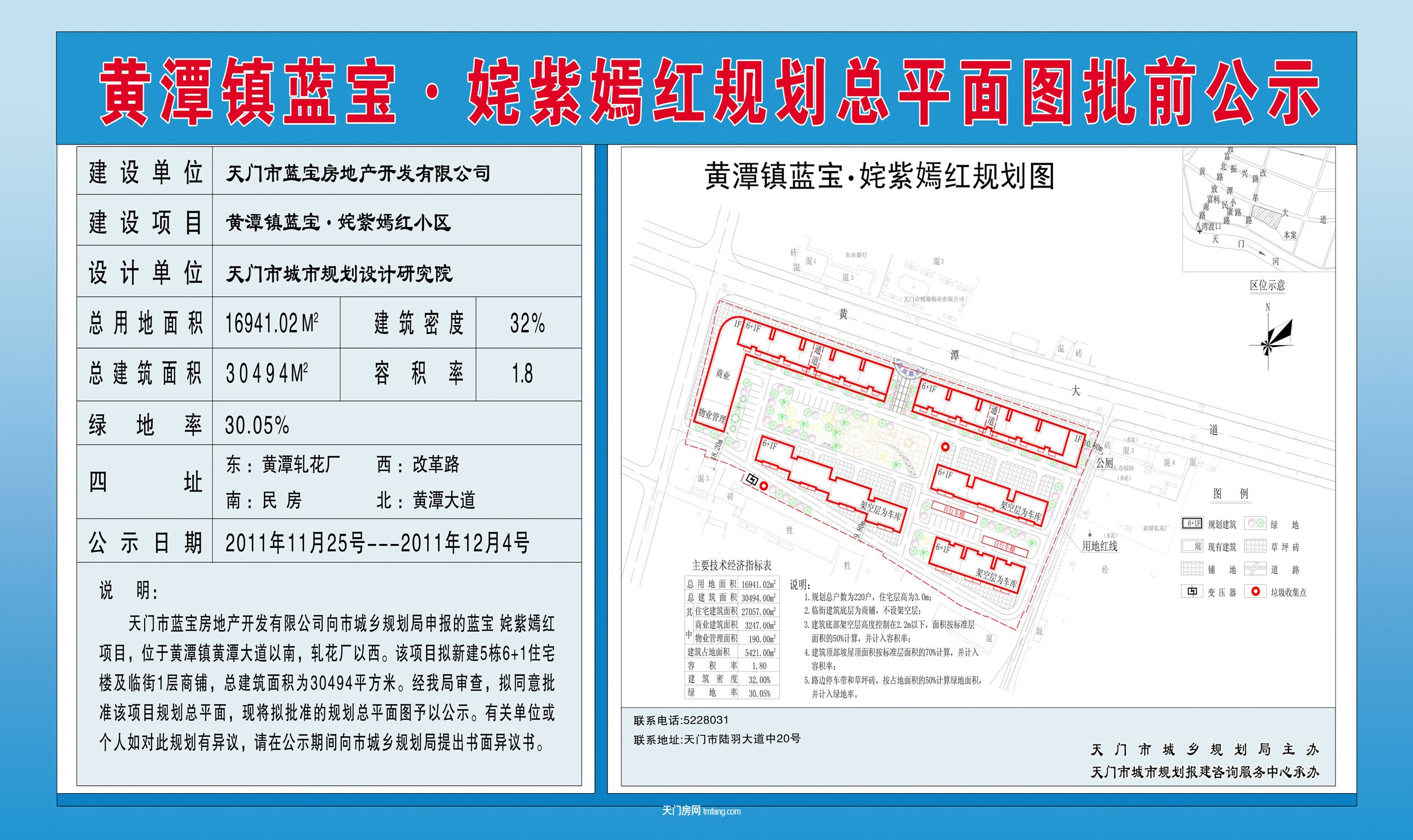 黄潭镇蓝宝·姹紫嫣红规划总平面图批前公示