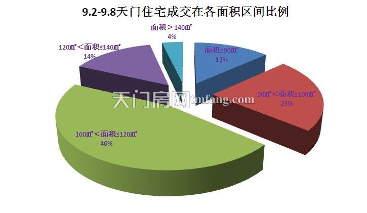 图四上周(9.2~9.8)住宅销售在各面积区间比例