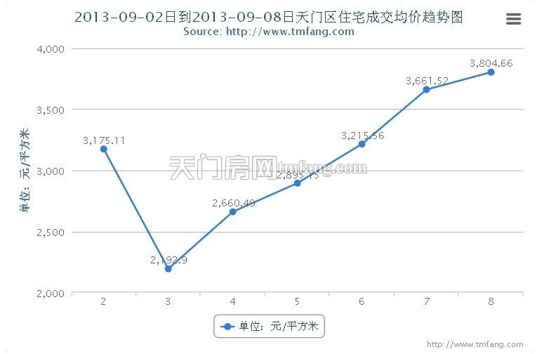 图二:上周(9.2~9.8)天门地区住宅成交均价趋势图