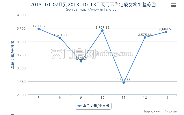图二:上周(10.7~10.13)天门地区住宅成交均价趋势图