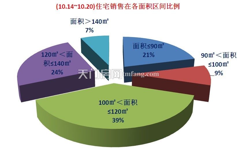 图四上周(10.14~10.20)住宅销售在各面积区间比例