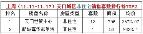 上周(11.11—11.17)天门城区非住宅销售套数排行榜TOP2