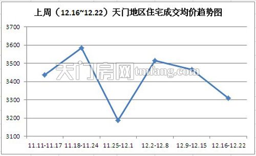 上周(12.16~12.22)天门地区住宅成交均价趋势图